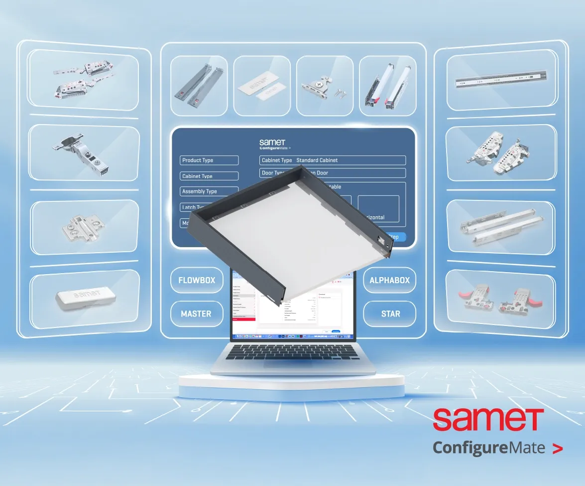 Vereinfachen Sie das Möbeldesign mit dem ConfigureMate: Finden Sie die richtigen Beschläge, erstellen Sie Vorlagen und bestellen Sie problemlos Teile.